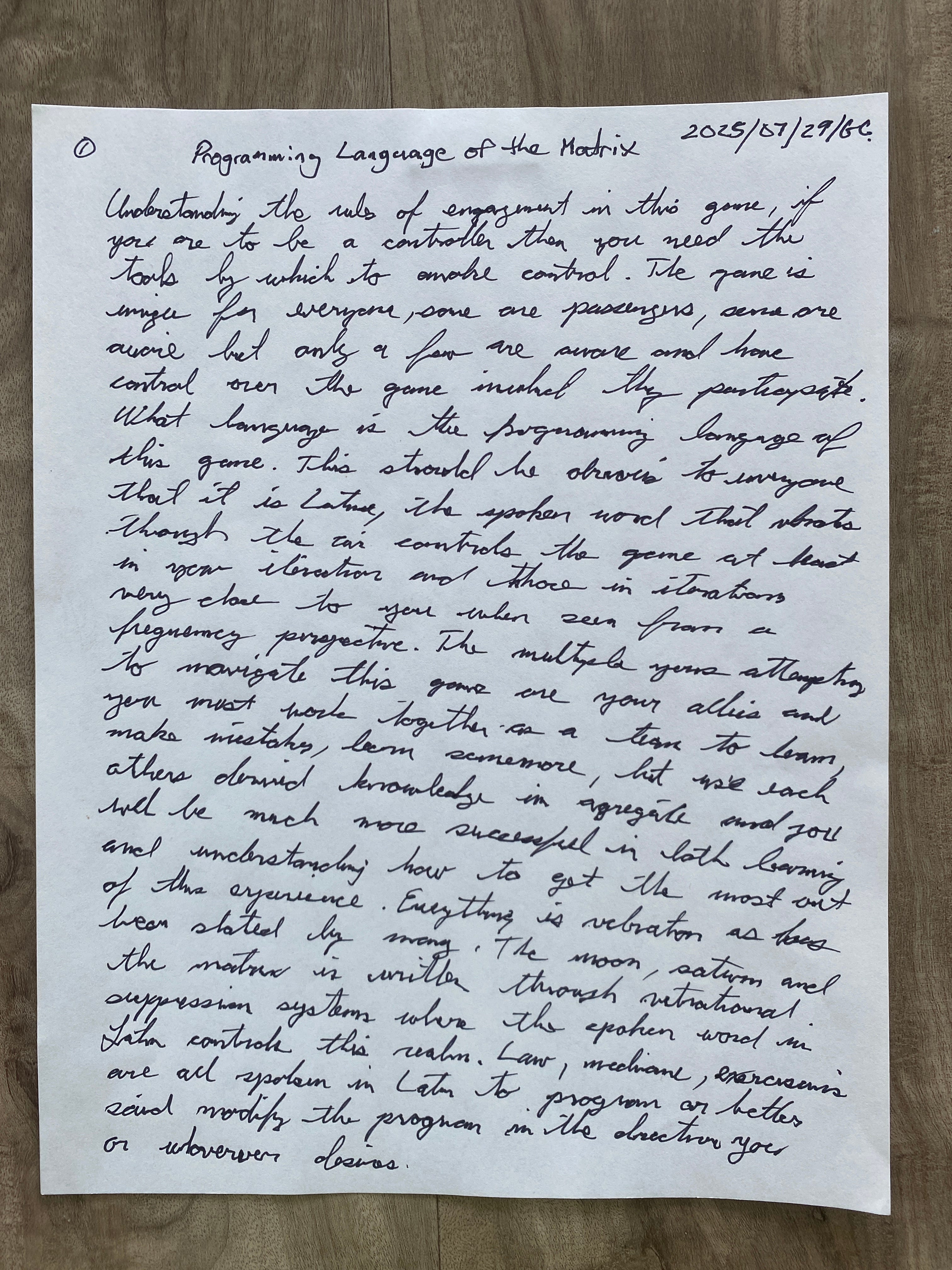 Understanding the rules of engagement in this game, if you’re to be a controller then you will need the tools by which to invoke control. The game is unique for everyone, some are passengers, some are aware, but only a few are aware and have control over the game in which they participate. Which language is the programming language of this game? This should be obvious to everyone that it is Latin, the spoken word that vibrates through the air controls the game at least in your iteration and those iterations close to you when seen from a frequency perspective, the multiple yous attempting to navigate this game are your allies and you must work together as a team to learn, make mistakes, learn some more, but use each other’s derived knowledge in aggregate and you will be much more successful in both learning and understanding how to get the most out of this experience.